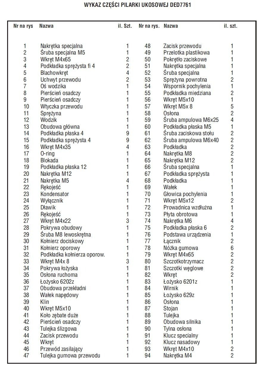- Wszystkie Części Zamienne do DEDRA DED7761.