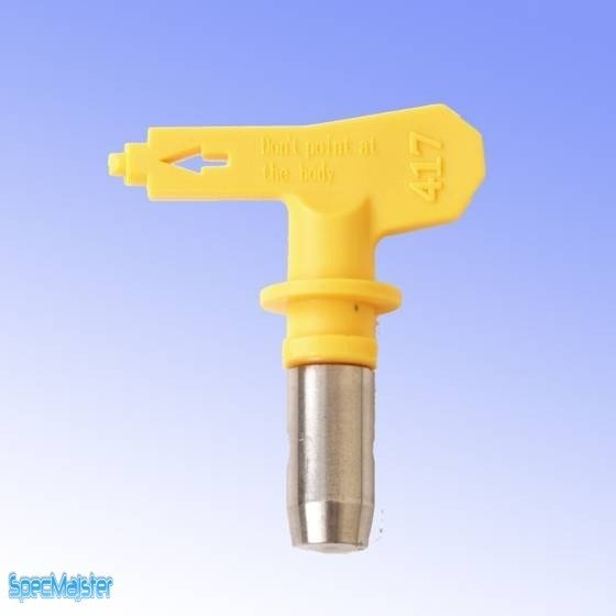 Dysza 519, cyfra 5 odpowiada kątowi 40 stopni, aby uzyskać szerokość strumienia, należny pomnożyć wartość kąta przez 5: 5x5 = 25 cm szerokości strumienia. Wielkość otworu określa ilość farby, która wypływa przez dyszę. Wielkość otworu opisana jest przez dwie ostatnie cyfry np. dysza 519, w tym przypadku 19 odpowiada otworowi o wielkości 0,019 cala, czyli 0,48 mm.