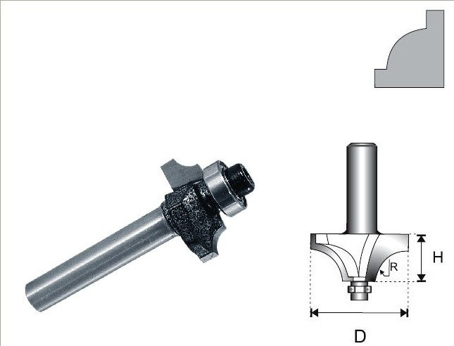 • Ornamentowy z łożyskiem.Trzpień 12 średnica freza 34,9 długość robocza 15,5 promień 11,1 mm.