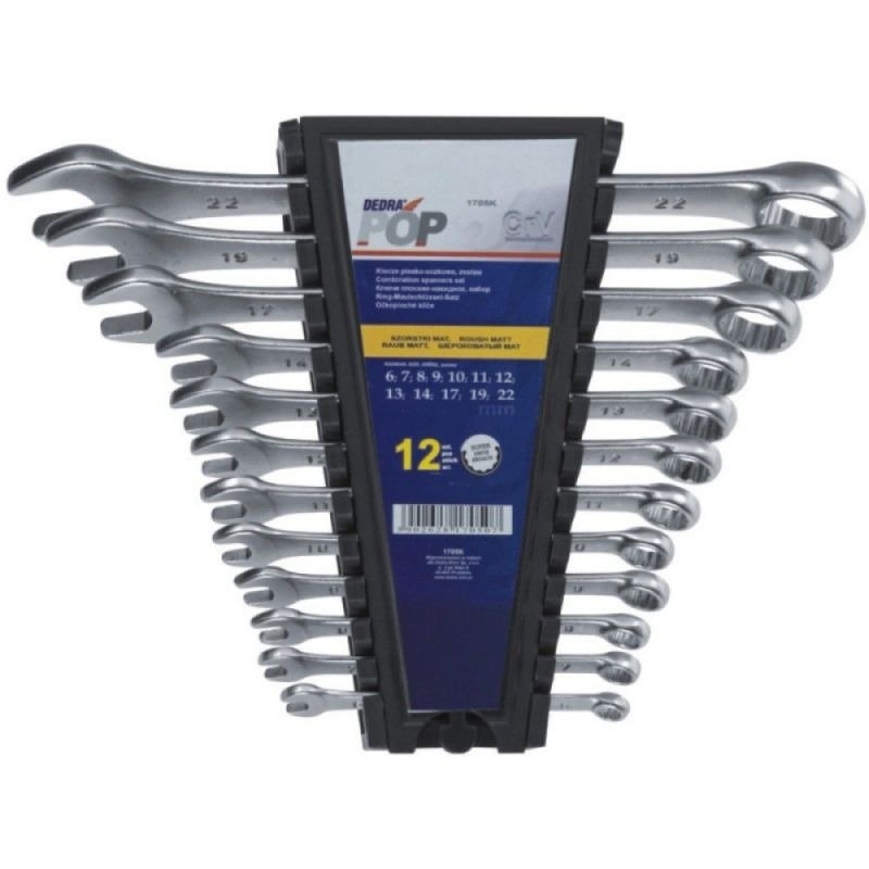 DEDRA Klucze płasko-oczkowe chromowane CrV 6;7;8;9;10;11;12;13;14;17;19;22 12szt. 1705K