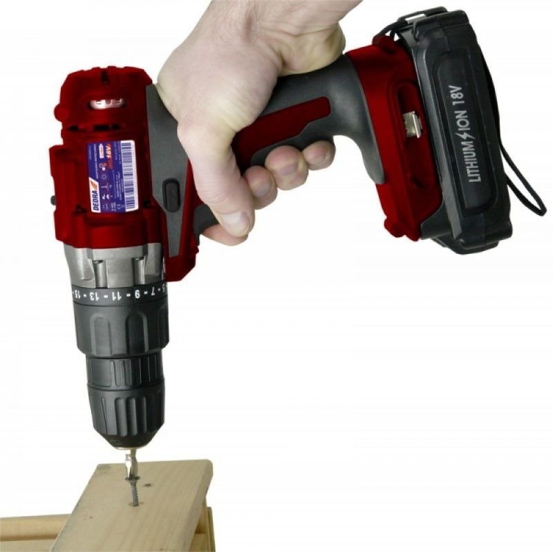 Wiertarko-wkrętarka DEDRA DED7883-Li jest produktem zaprojektowanym do wiercenia w metalach, ceramicznych materiałach budowlanych, wszelkiego typu drewnach, materiałach drewnopochodnych jak: sklejka, płyty wiórowe, itp. odpowiednio do jej wymiarów. Urządzenie zasilane jest napięciem 18 V, dzięki czemu posiada dużą moc oraz maksymalny moment obrotowy 20 Nm. Wkrętarka posiada elektroniczny system sterowania prędkością obrotową, który gwarantuje łagodny rozruch i pełną kontrolę wiercenia i wkręcania w różnych materiałach. Wskaźnik poziomu naładowania akumulatora pozwala kontrolować stan naładowania baterii. Dodatkową zaletą jest lampa LED oświetlającą obszar roboczy. Lampka wykonana jest przy użyciu technologii LED, dzięki czemu zużywa bardzo mało energii. Wiertarko-wkrętarka akumulatorowa DEDRA DED7883-Li posiada baterię litowo-jonową, o dużej pojemnośc 1,3 Ah, którą można doładowywać w dowolnej chwili. Czas ładowania baterii to tylko 1 godzina. Miękki uchwyt i ergonomiczna rękojeść zapewniają optymalną wygodę i ergonomię pracy.