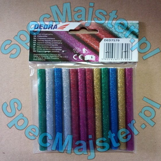 - Klej topliwy uniwersalny mix kolorów brokat 12 sztuk DEDRA