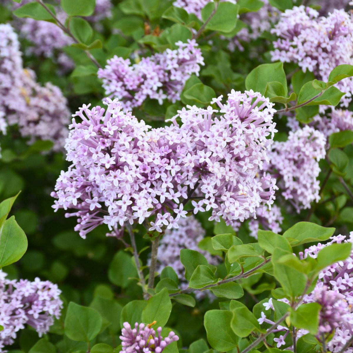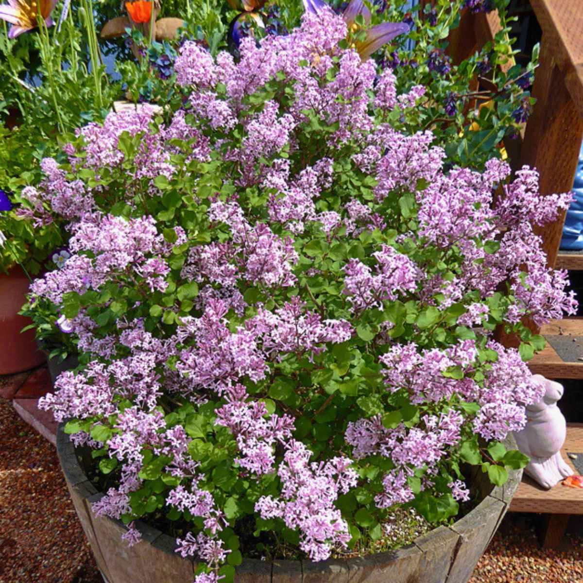 • Syringa meyeri| Zwarty krzew dorastający do 1,5 m wys. o kopulastym pokroju. Kwiaty liczne, pachnące, lila-różowe, pojedyncze, zebrane w wiechy. Kwitnie obficie na przełomie maja i czerwca. Często powtarza kwitnienie w lipcu.