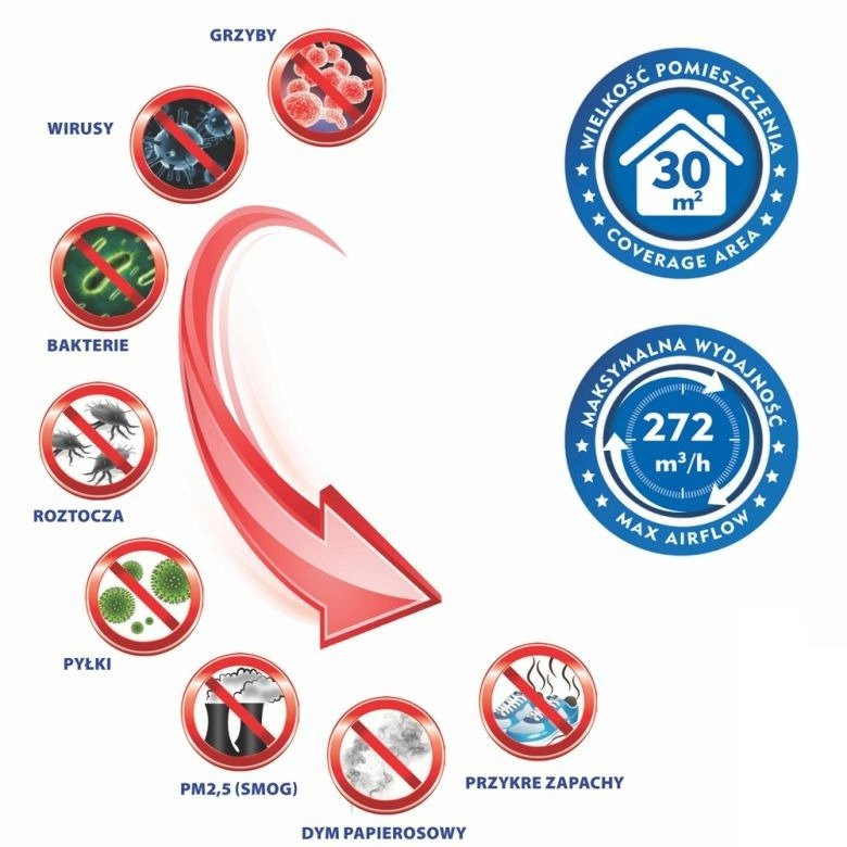 - Rekomendowany do pomieszczeń o maksymalnej powierzchni 30m²