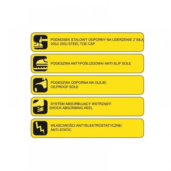 Podnosek stalowy odporny na uderzenie z siłą 200J