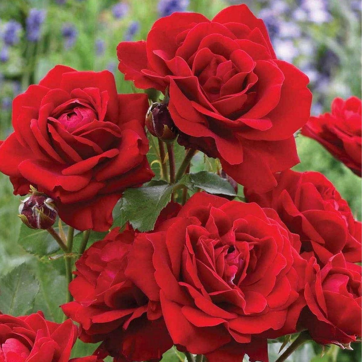 Róża rabatowa czerwona jest odmianą o szlachetnych, dużych kwiatach osadzonych na sztywnych, prostych łodygach.